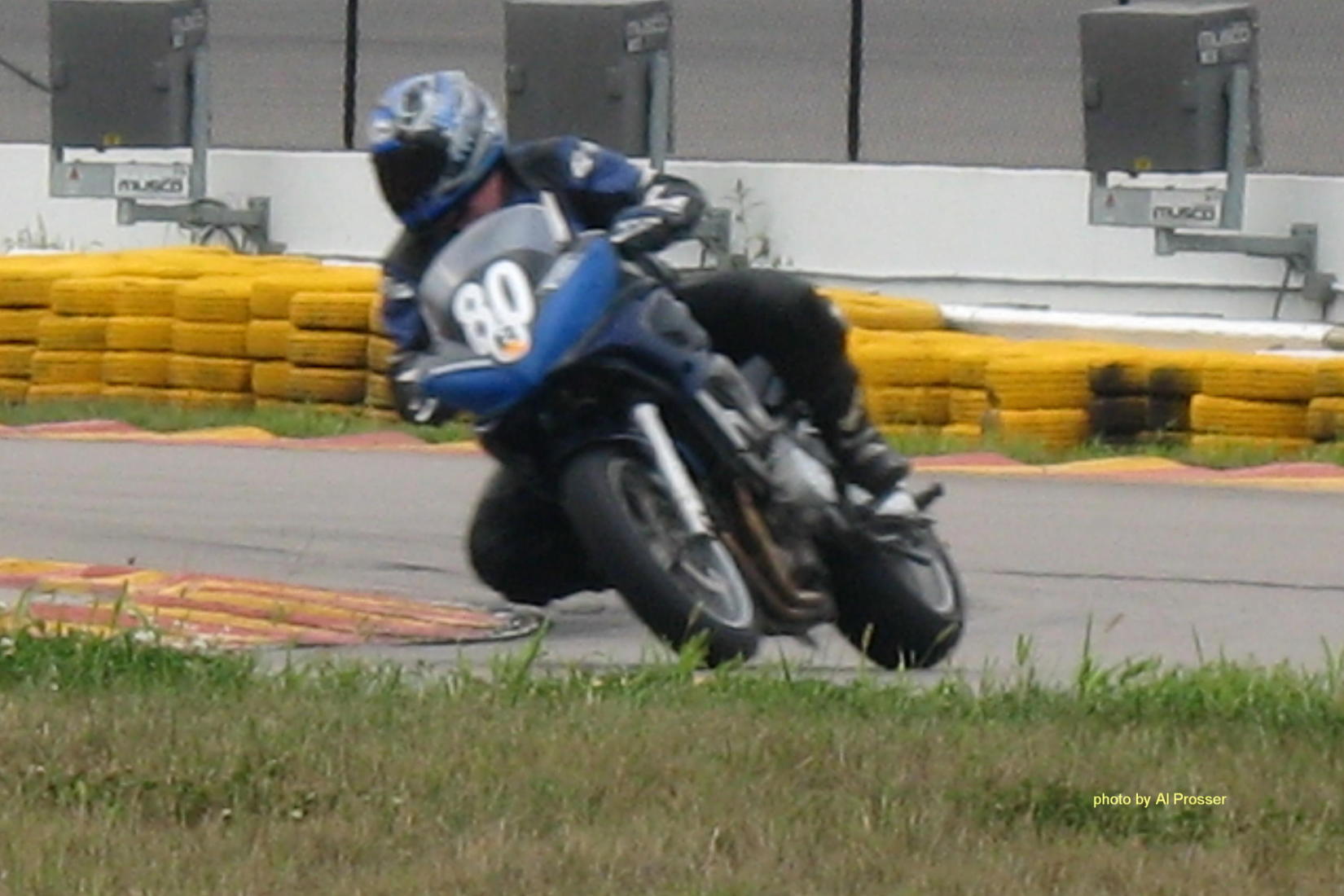 I used to take action motorcycle photos as a hobby, so took a few to share. My cameras are not exactly pro-quality and I am getting used to setting the digital for sports photos so the pictures are not as nice as I would like. I have low res copies here. Most of them have a higher resolution available if you click on them, and I have the full uncropped versions if someone is interested. Look at my Photo Notes for technical information on the photos.
